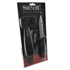 Le Seac Hammer est un poignard de plongée très fonctionnel qui se démarque des autres couteaux de plongée par le maillet en acier inoxydable placé au bout du manche. Le couteau Seac Hammer a une longueur totale de 25 cm, dont 12 cm de lame en acier inoxydable trempé AISI 420, avec un côté affleurant et un côté dentelé + coupe-fil. LLe corps rigide du manche du couteau de plongée Seac Hammer a une surimpression en caoutchouc souple qui augmente la prise en main aussi bien avec des gants qu’à mains nues. La gaine comporte un grand bouton de déverrouillage et permet de ranger le couteau de plongée des deux côtés. Fourni avec 2 sangles pratiques pour fixer la gaine à la jambe.
