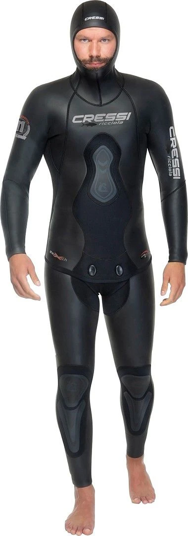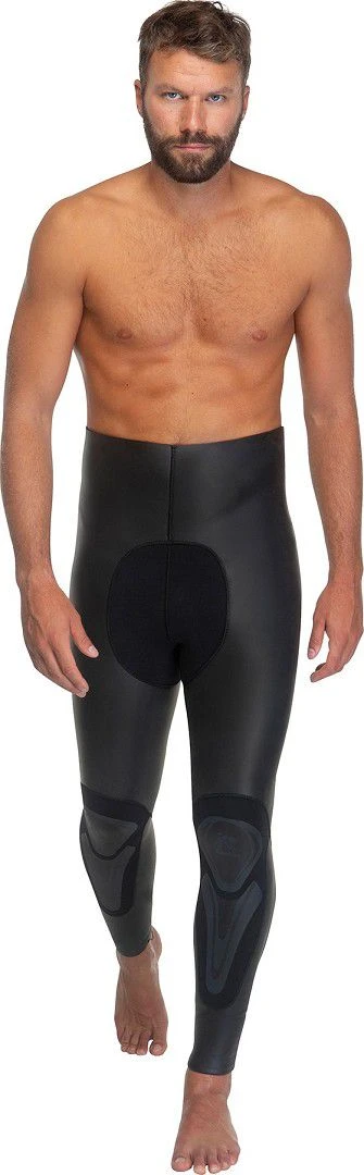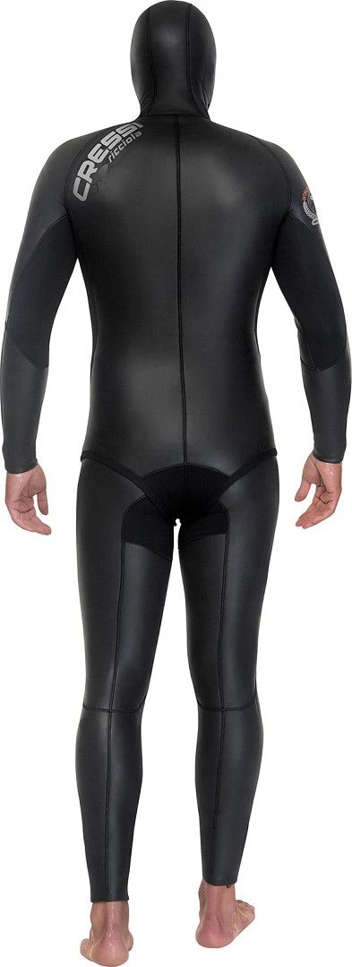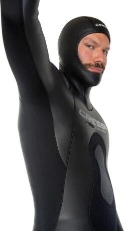 La combinaison présente un panneau sous les aisselles pour améliorer le confort et le port. La conception est rigoureusement anatomique. Renforts de protection sur la poitrine, les genoux et l’entrejambes. Joints étanches en néoprène lisse sur la capuche, les poignets et les chevilles.