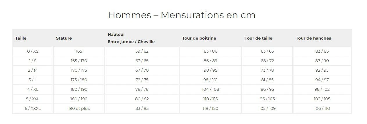 | Faites votre choix | 1/S, 2/M, 3/L, 4/XL, 5/XXL |