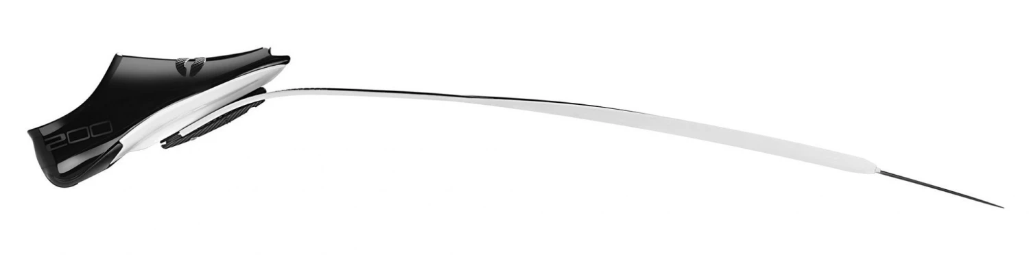 Palme spécifique à l’apnée, avec un flap hydrodynamique anti-turbulence terminal. Disponible dans 3 duretés: 20 (extra soft), 25 (soft) et 30 (medium). La finition de la palme est en fibre de carbone avec un décor blanc. La voilure est associée au chausson 200 avec une semelle blanche et un dessus noir. Les longerons sont noir et blanc.