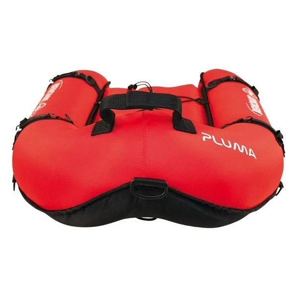 Compartiment de rangement à l’avant fermé par un rabat velcro Cordons élastiques sur le coussin central pour sécuriser du matériel Dimensions : 65 x 82 cm Utilisations possibles : • Aide au palmage (notamment sur longue distance) • Bouée de signalisation • Transport d’arbalètes et du matériel (ligne de mouillage, accessoires de pêche, ravitaillement, documents/effets personnels) • Flotteur accroche-poissons Transport du matériel • Attache pour 2 arbalètes par crochets et anneaux caoutchouc • Compartiment à l’avant fermé par un rabat velcro • Cordons élastiques sur le coussin central pour sécuriser du matériel • 8 anneaux d’accrochage (Ø 40mm) • 3 anneaux (Ø 50mm) de tractage et de mouillage pouvant aussi servir à l’accrochage d’équipement Sécurité • Visibilité de la couleur rouge • Permet de nager ou de se reposer en appui sur la planche • Livrée avec deux pavillons montés sur mat • 3 vessies (2 latérales et celle du coussin central)