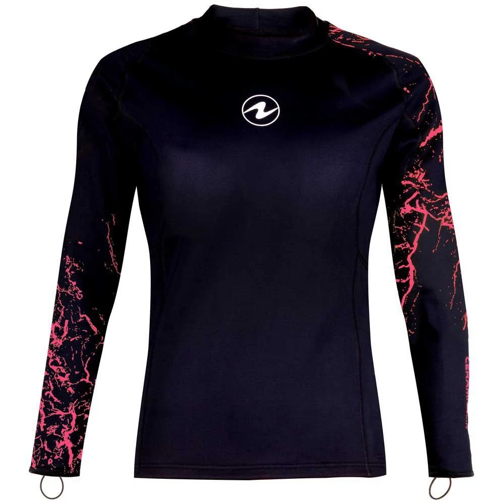 La gamme de sous-vêtements CeramiQskin comprend les vêtements Aqualung les plus évolués qui soient, vous pourrez les porter sous votre combinaison humide ou étanche pour rester au chaud lors des plongées. Ils peuvent aussi être portés seuls lors des plongées en eaux tièdes. Le matériau utilisé est un tissu exclusif et extrêmement technique qui offre un haut niveau de protection thermique, une flottabilité nulle et une sensation de confort extrême grâce à la technologie céramique appliquée au tissu tri-laminé. CeramiQskin est un mélange de Lycra à l’extérieur avec une membrane polyuréthane (PU) respirante et du tissu polaire à l’intérieur.